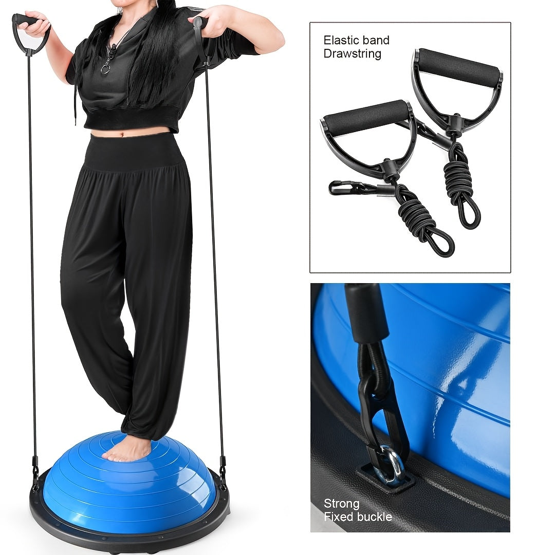 Enhance your fitness routine with this explosion-proof balance ball, designed for core strengthening, stability training, and full-body workouts. Made from durable PVC and polypropylene, this balance trainer offers excellent support for yoga, Pilates, and strength training exercises. Equipped with resistance bands and a foot pump, it provides a complete workout experience for all fitness levels.